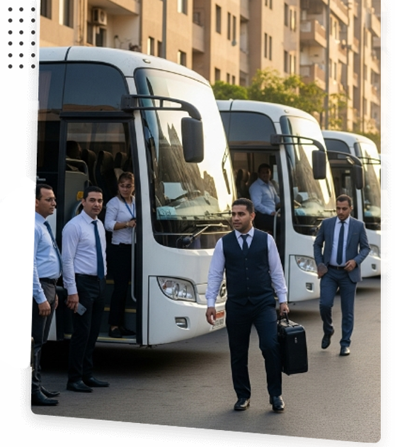 وتتولى الشركة إدارة وتنظيم عمليات نقل العمال وأعضاء هيئة التدريس والطلاب من النقطة (أ) إلى النقطة (ب) وفق جداول زمنية دقيقة، بما يضمن انسيابية العمليات اليومية وتحقيق أعلى درجات الانضباط والانتظام.